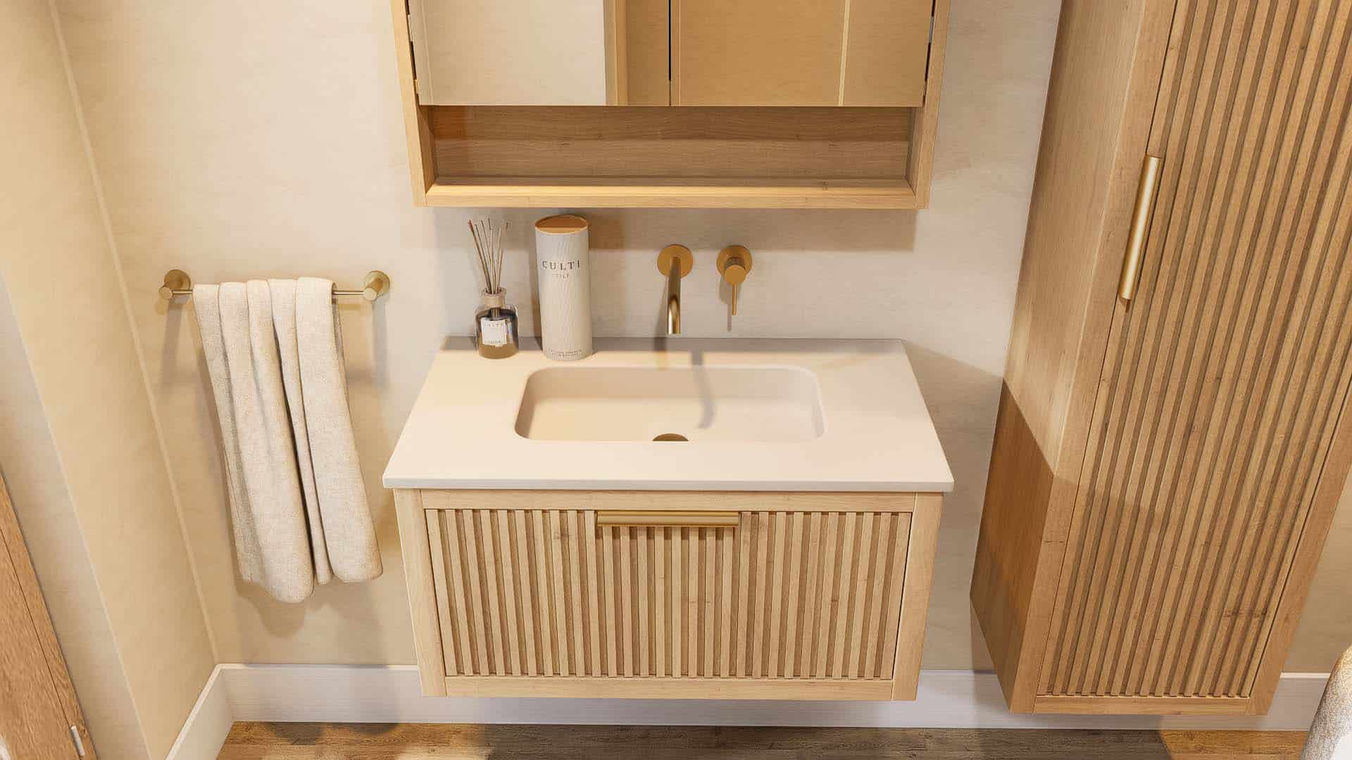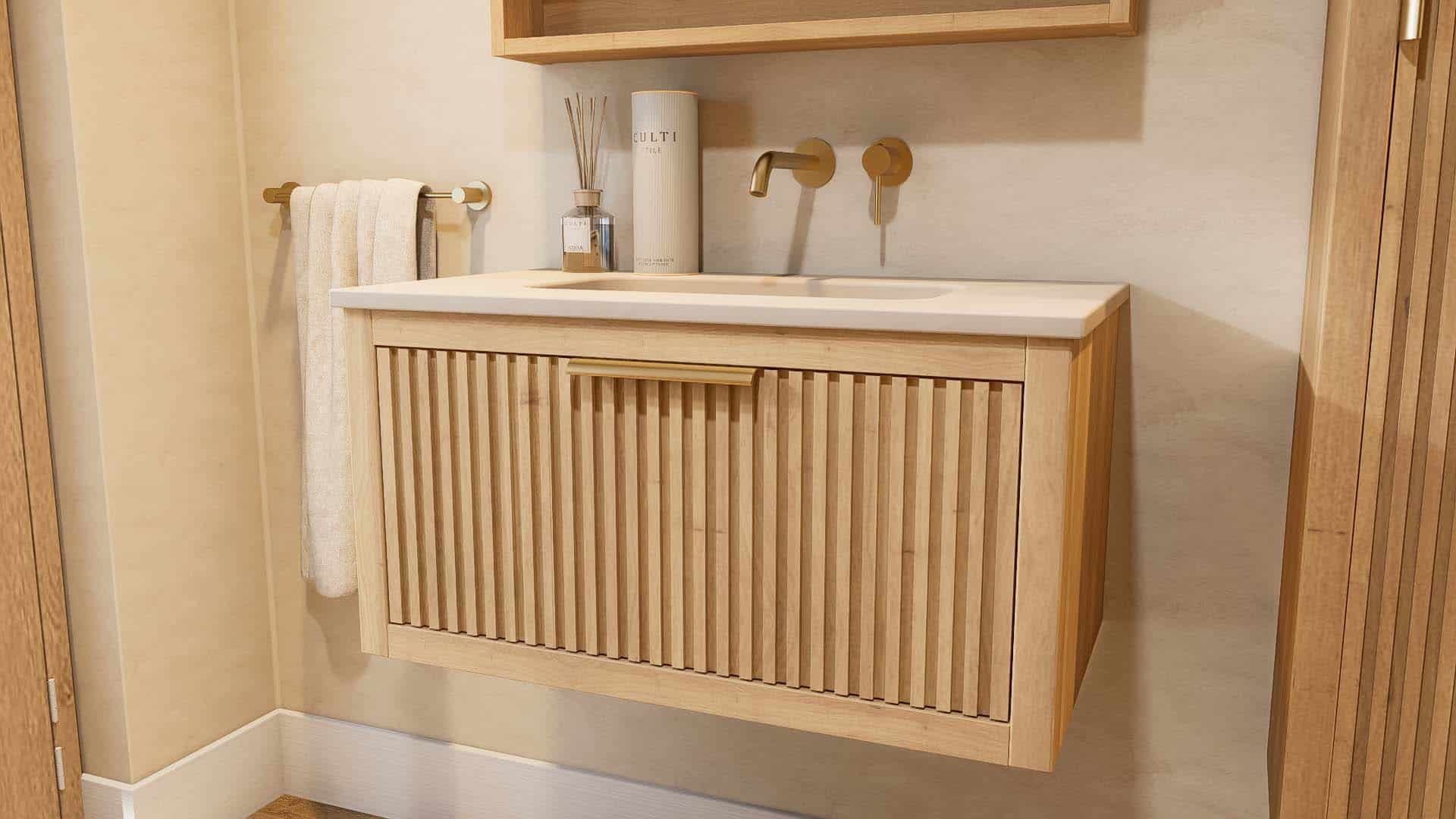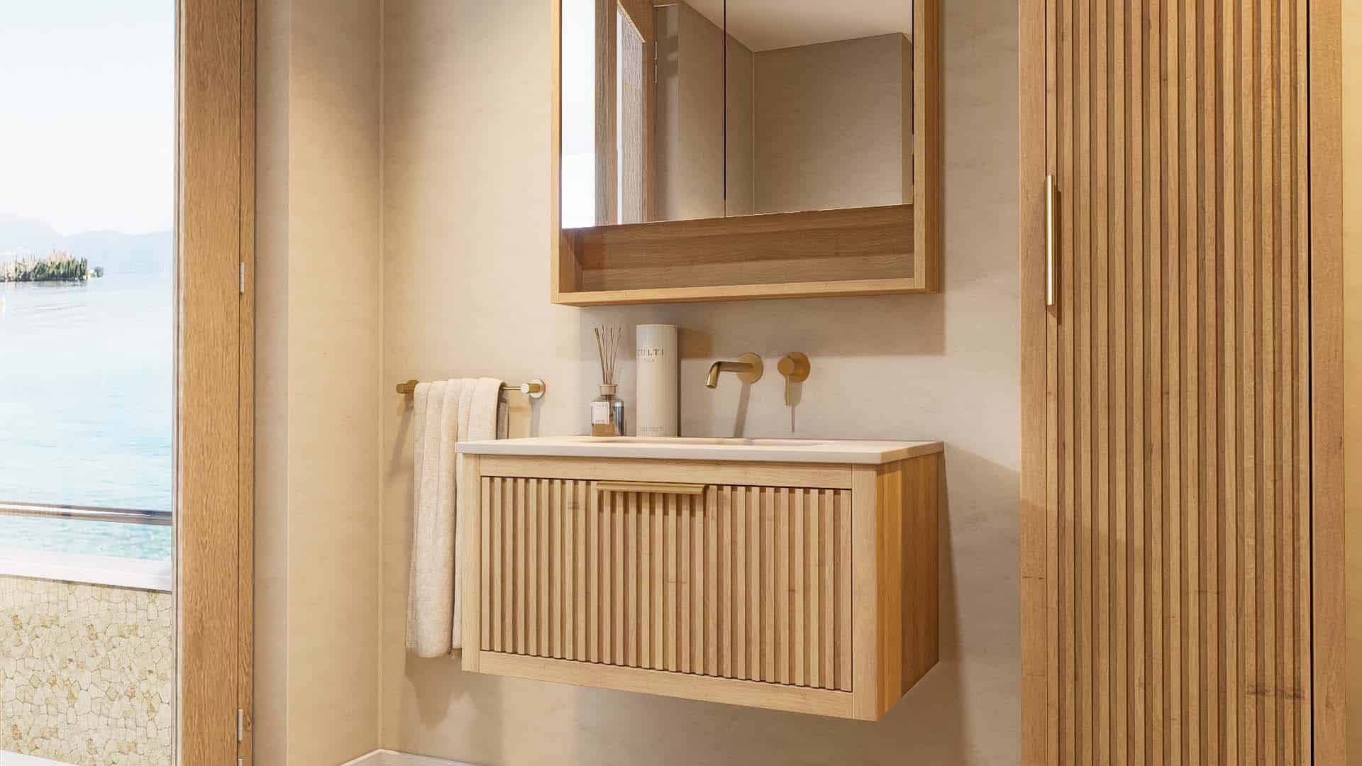 Afwerking badkamermeubel: Voelbare houtstructuur