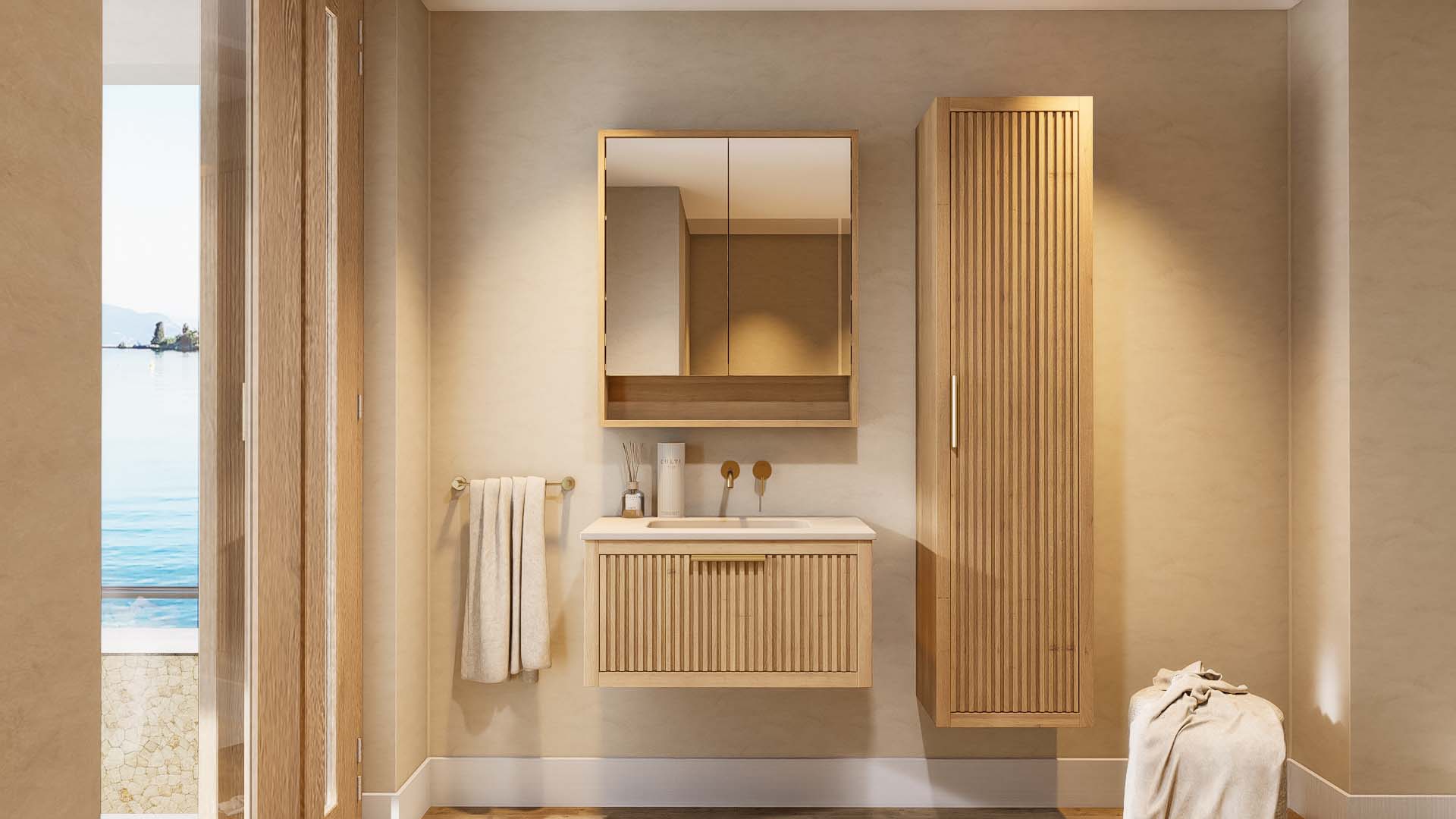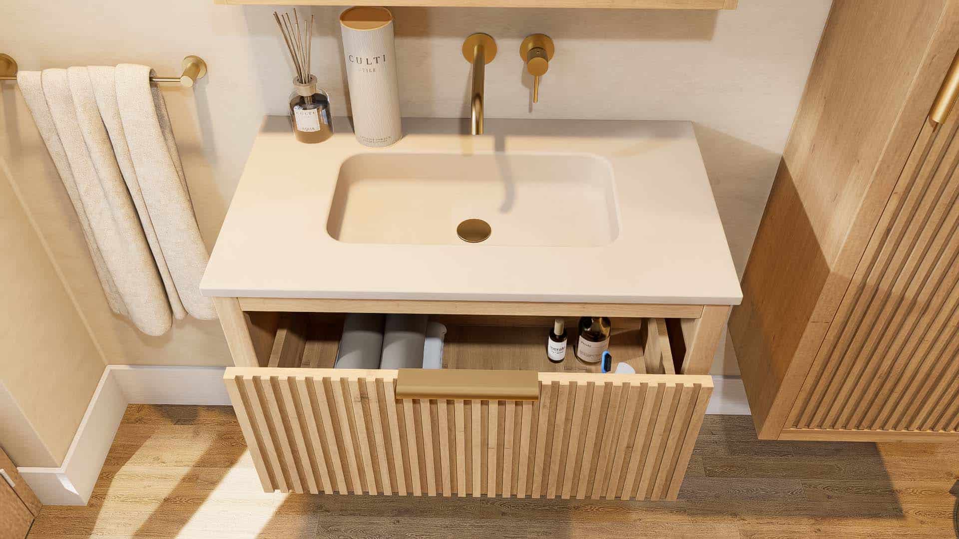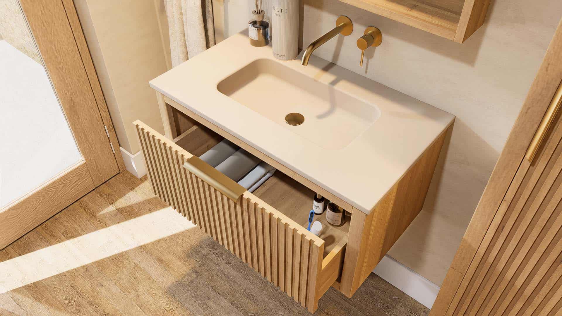 Afwerking badkamermeubel: Voelbare houtstructuur
