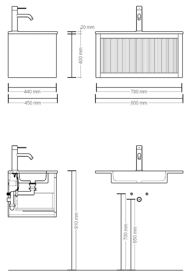 De lades zijn uitgerust met de beste softclose ladegeleiders, wat zorgt voor een verfijnde en stille werking. Het front met subtiele groeven benadrukt het ambachtelijke karakter en geeft het meubel een tijdloze uitstraling. Het lichtgewicht betonnen blad in de tint Beige voegt een vleugje elegantie toe en vormt een perfecte balans tussen modern design en natuurlijke charme. Je kunt kiezen voor een wastafel met of zonder kraangaten – precies zoals het past bij jouw stijl en ruimte.